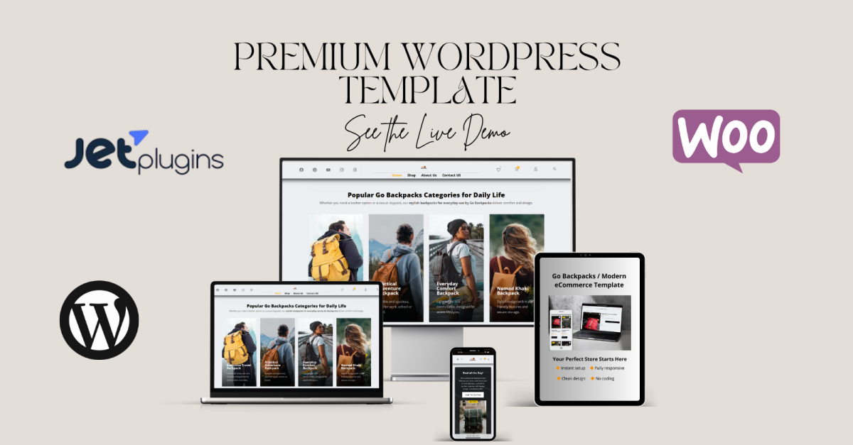 This WooCommerce template for Elementor is a powerful eCommerce solution designed for fashion, accessories, and backpack stores. It includes wishlist functionality, product filters, a mini cart, and a user login popup—all fully responsive and mobile-friendly. Built with JetPlugins and the lightweight Blocksy theme, it ensures fast loading and SEO optimization. You can install the demo...