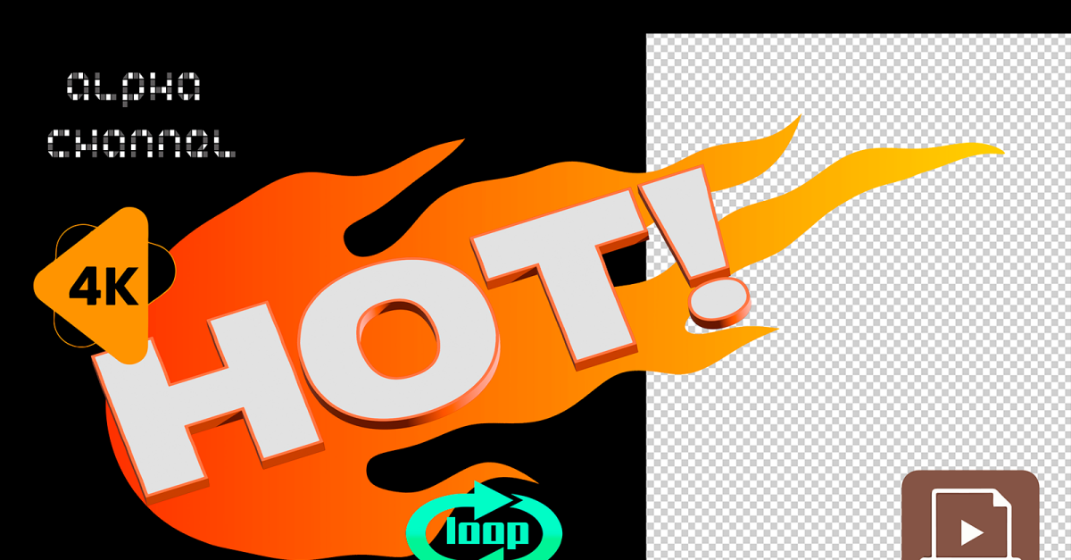 An energetic animation with the word “HOT!” in a fiery design, perfect for drawing attention to hot offers, promotions, or new products. 4K video with an alpha channel (transparent background), which makes it easy to integrate into any video project, stream or commercial. Loop-ready format ensures smooth repetition. File format: .MOV
