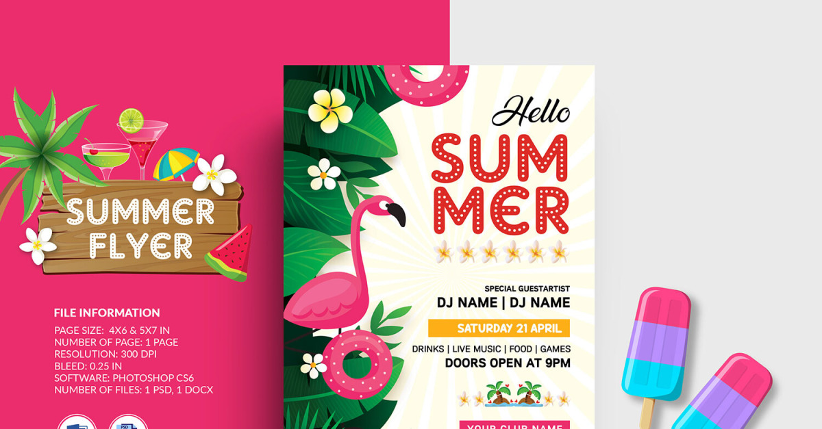 Summer Party Flyer Template This is not a mock-up File Information: Size: 5×7 & 4×6 InPage: One sideResolution: 300 dpiColor mode: CMYKBleed: 0.25 inWorking file: Photoshop c2, & Microsoft WordFiles included: Photoshop cc (psd) & Microsoft Word (docx)Font used: Download link included in help file CONTACT ME If you have any questions or would like...