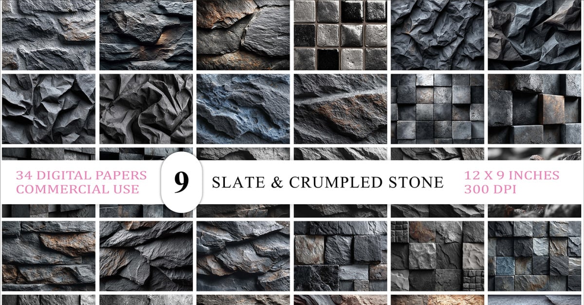 34 Dark Slate & Crumpled Stone Texture Background Bundle | Premium Quality | Commercial Use Ready This Dark Slate & Crumpled Stone Texture Bundle features 34 premium quality images showcasing gritty stone surfaces, tile formations, crumpled slate, and industrial-style textures. Each texture is carefully crafted to reflect realistic stone detailing, perfect for 3D rendering, architectural...