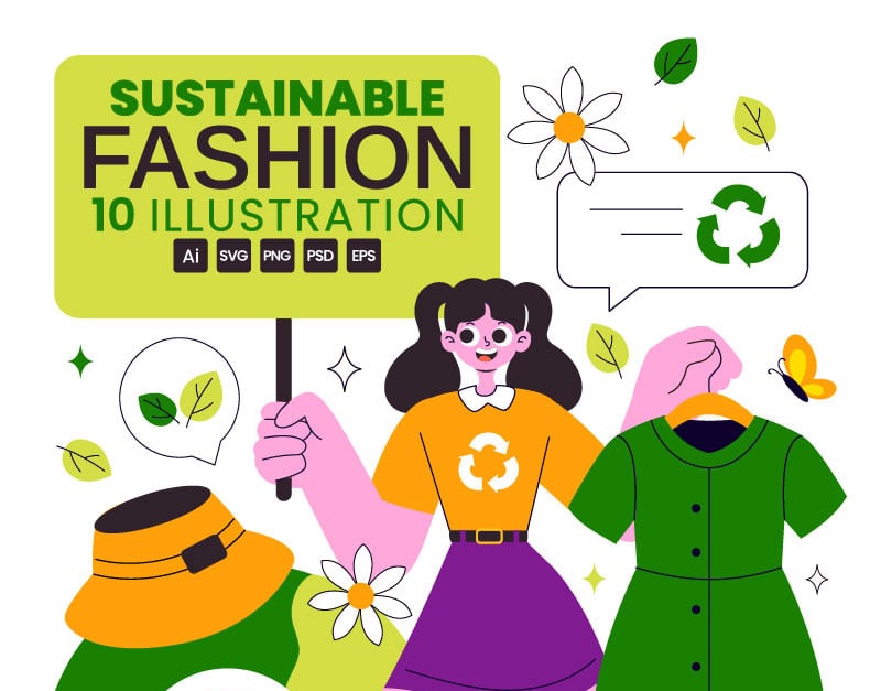 Sustainable Fashion Illustration Featuring Clothing Recycling with Green T-Shirt, Reuse, Reduce, Recycle and Eco-Friendly Concept in a Background Suitable for Poster, Web Banner, Brochure, Landing Page and Others Background Template Features: – Fully editable vector files, easy to edit the object, color and background – Include 100% vector Ai, Eps 10, SVG – PNG transparent...
