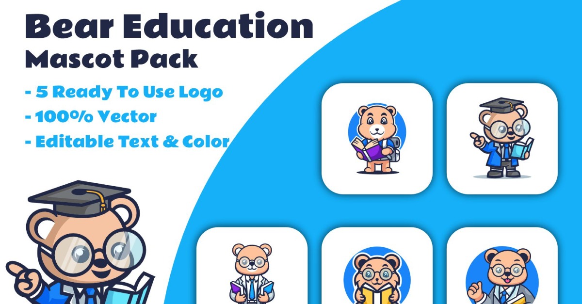 Smart Bear Edu Pack – Cute Bear Mascot Logos for Education Smart Bear Edu Pack is a charming educational mascot logo collection featuring 5 ready-to-use bear-themed designs. Ideal for school branding, preschool programs, learning platforms, or children’s educational products. Each logo is crafted in a fun, friendly style to inspire curiosity and trust in young...