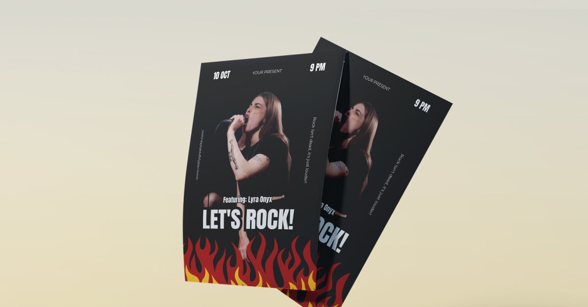 Let’s Rock Flyer Template – Female Rock Concert Poster Promote your next female-led rock concert or music festival with this Let’s Rock Flyer Template, featuring a bold performer image with flame graphics and expressive typography. Ideal for event promoters, bands, clubs, and music venues looking to advertise their events with impact. Features Print-ready (CMYK, 300...