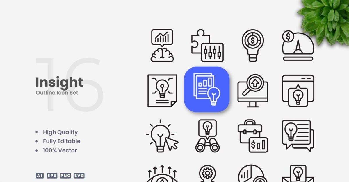 Set of 16 Insight Outline Icons | Simple and clean design, perfect for websites, mobile apps, books, social media, infographics, flyer, print, banners, posters and many more. To resize or change color you can easily edit on vector software like Adobe Illustrator and CorelDRAW. Features : High Quality Design100% Vector100% CustomizableEditable StrokeEasy Drag and Drop Files...