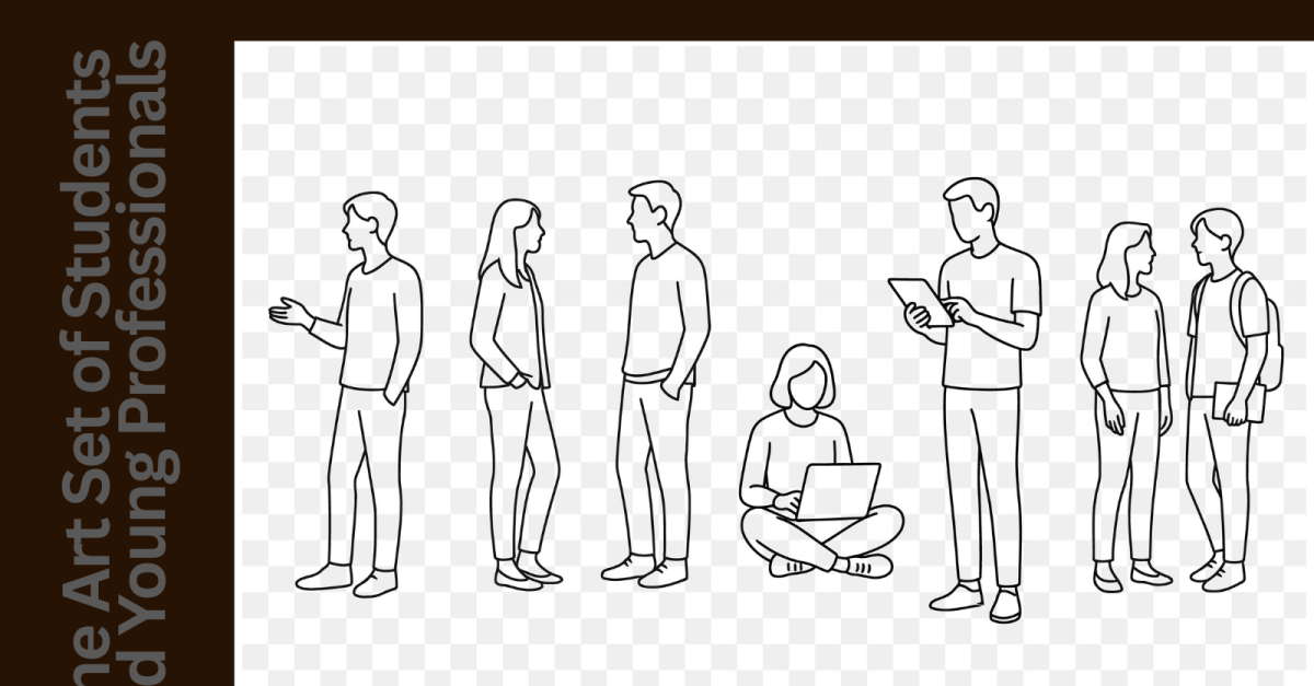 Minimalist Line Art Set of Students and Young Professionals Talking, Studying, and Using Technology clean and modern black and white line art vector set featuring faceless, handless characters engaged in casual communication, learning, and digital tasks. Includes scenes of people chatting, walking, working on laptops and tablets, and socializing. This versatile set is perfect for...
