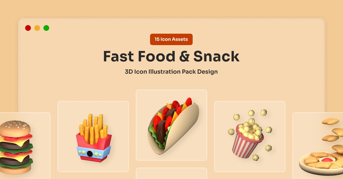 Tasty Soft 3D Snack Icons Collection