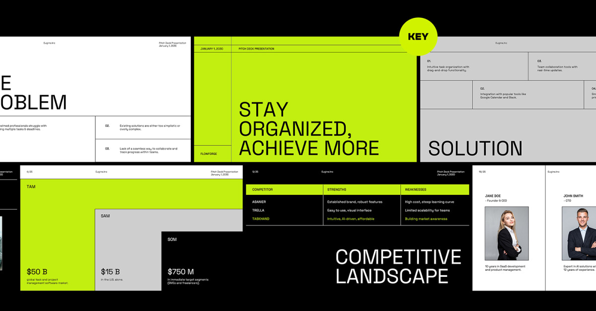This presentation template is Ideal for agencies, freelancers, and professionals, this template offers a modern, sleek, and professional design concept, enabling you to create high-quality pitch decks in a matter of minutes. Say goodbye to the hassle of starting from scratch and focus your valuable time and attention on crafting compelling content, while the engaging...