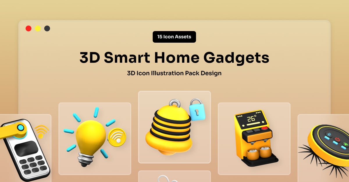 High-quality 3D icon set showcasing smart gadgets with sleek textures and subtle lighting. Designed for designers and creators who need tech-inspired assets for apps, web, and presentation use. **Highlights:** – 15 unique 3D assets – Fully editable color in Blender – Well-organized layers – High Resolution PNG (3000 x 3000 px) – Ready-to-use transparent icon...