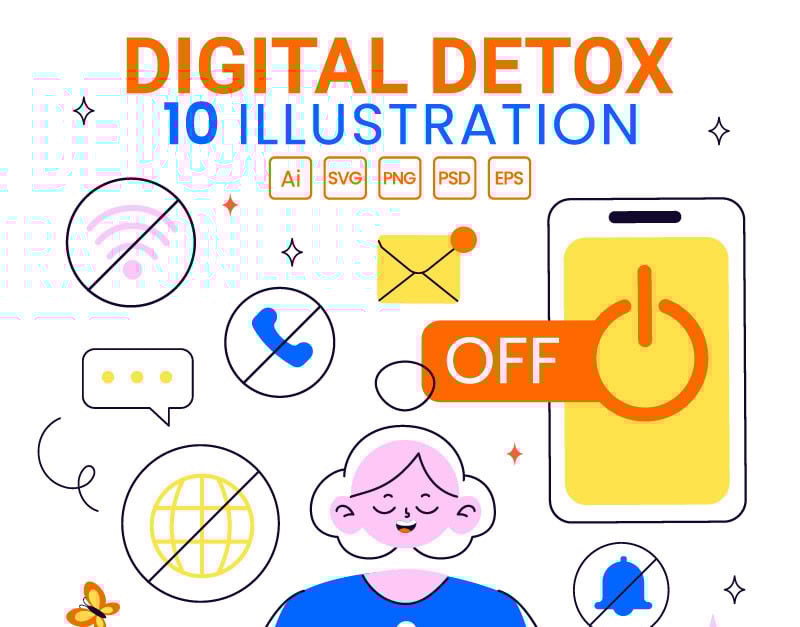 Digital Detox Illustration Featuring Embracing Life Without Digital Devices, Offline Leisure Activities, and Relaxing Without Internet Connections Suitable for Poster, Web Banner, Brochure, Landing Page and Others Background Template Features: