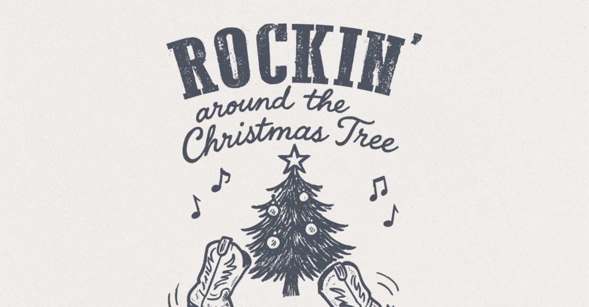 Rockin Around the Christmas Tree PNG, Retro Christmas, Western Holiday Shirt, Country Christmas PNG, Cowboy Boots Art, Instant Download